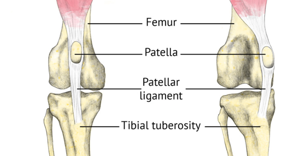 Сухожилие надколенника начинается в мышцах бедра, оборачивается вокруг коленной чашечки и соединяется с верхней частью берцовой кости.
