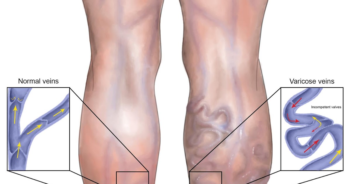 Внутренняя терапия (лазерная или радиочастотная). Эти методы, также известные как эндовенозные, используются для лечения более глубокого варикозного расширения вен. Проблемную вену определяют с помощью ультразвука, и в вену вводят небольшой катетер (см. «Эндовенозное лечение»). Катетер излучает либо лазерную, либо радиочастотную энергию, которая сжимает и закрывает вену. Как и при других методах лечения, окружающие здоровые вены поддерживают нормальный кровоток.Могут возникнуть отек и боль, поэтому вы должны носить компрессионные чулки не менее двух недель. Поверхностные вены, соединенные с обработанной веной, обычно сжимаются после лечения, но в противном случае их можно лечить с помощью склеротерапии «ретушью».